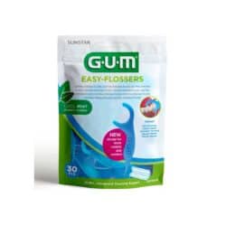 GUM Easy-Flossers Κερωμένο Οδοντικό Νήμα με Γεύση Μέντα και Λαβή σε Μπλε χρώμα 30 τμχ