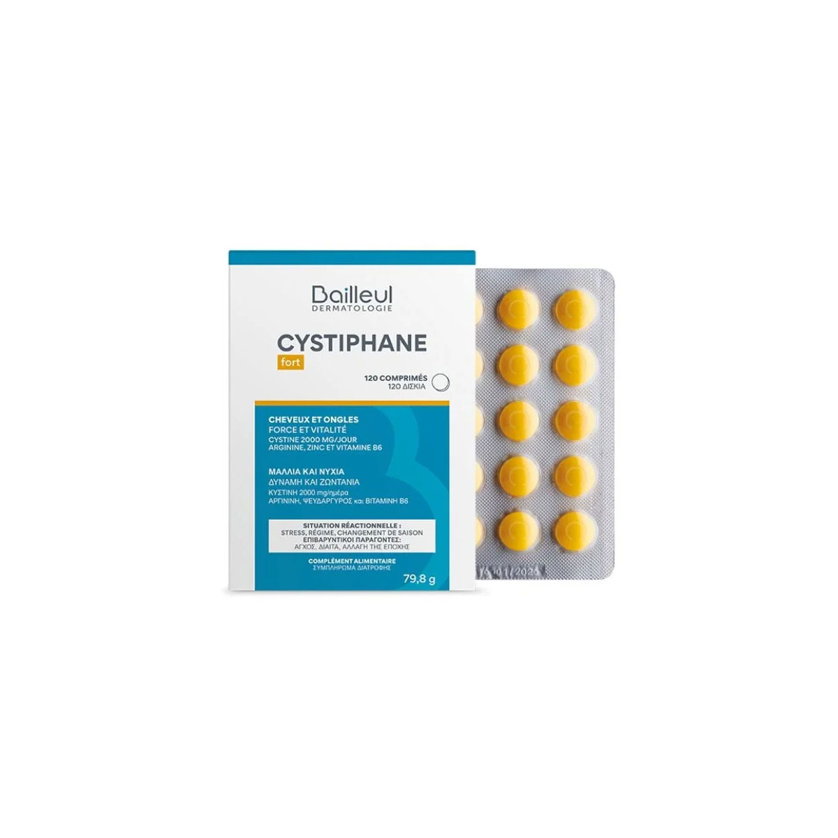 Το Cystiphane Fort είναι ένα συμπλήρωμα διατροφής με βάση την Κυστίνη φυτικής προέλευσης, τη Βιταμίνη Β6, την Αργινίνη και τον Ψευδάργυρο.